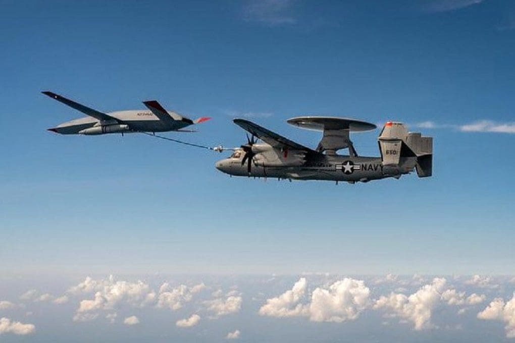 La prueba de reabastecimiento de combustible del E-2D se produce después de que el MQ-25 reabasteciera a un F/A-18 Super Hornet el 7 de junio de 2021.