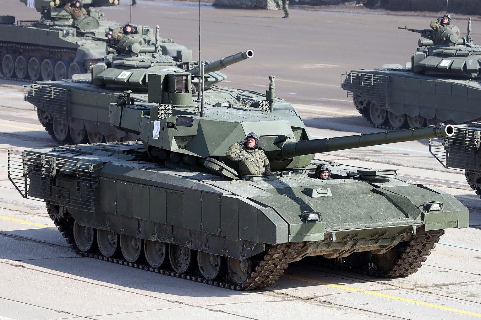 Por otra parte, el T-90M Proryv en su versión mejorada está equipado con un nuevo sistema optrónico multicanal y un blindaje con revestimiento antideslizante especial, similar al del T-14. El primer lote de dichos tanques fue recibido por el Ejército en el 2020.
