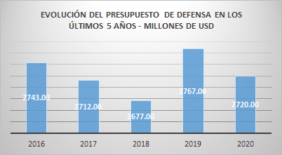 En millones de USD. Fuente: SIPRI. Presupuesto. Banco Mundial.