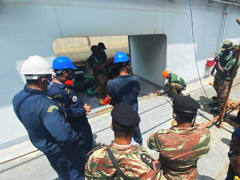 Finalizado los entrenamientos con el USS Hershel “Woody” Williams, la fragata Independência (F-44) se dirigió con rumbo a Camerún, arribando el día 24 de agosto al puerto de Kribi. En base a la informado por la Marina de Brasil, en el día 25 de agosto efectivos llevaron a cabo un adiestramiento junto a miembros de la Marina Nacional de Camerún. El objeto fue el de realizar una capacitación en control de daños y reparación de estructuras metálicas, brindado apoyo en la reparación del dique flotante localizado en el puerto Kribi bajo requerimiento de las autoridades camerunesas.