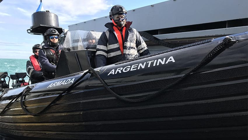 En navegación, el ARA Piedrabuena realizó lanzamiento y recuperación de las embarcaciones RHIB con las que cuenta el patrullero. Se trata de botes semirrígidos que presentan un diseño con mayor maniobrabilidad, seguridad y potencia necesaria para una respuesta inmediata.