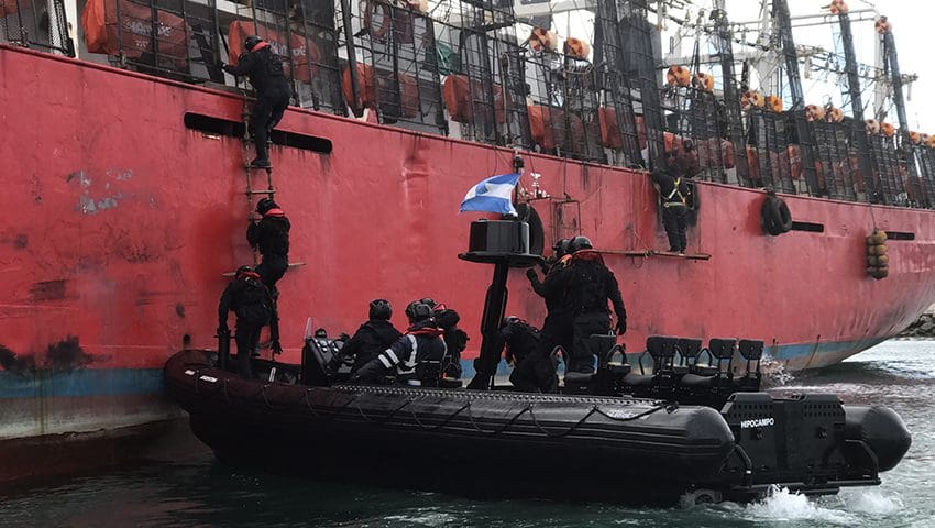 Dentro de las operaciones efectuadas, una dotación de Visita, Registro y Captura (VRC) fue destacada en los RHIB simulando un abordaje en un pesquero en la dársena de la BNMP; finalizada la actividad la dotación de VRC fue desembarcada en el patrullero ARA “Bouchard” y las embarcaciones recuperadas por la unidad.
