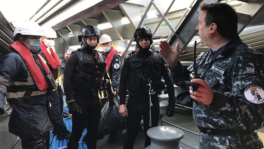 Asimismo, embarcó el comandante y segundo del futuro patrullero oceánico ARA “Contraalmirante Cordero” (POCC), Capitán de Fragata Nicolás Salinas y Capitán de Corbeta César Orellana, junto a una reducida comisión de oficiales y suboficiales; que se integraron a los movimientos de la tripulación para adquirir mayor conocimiento de los equipos y sistemas de la unidad y complementar la teoría con prácticas a bordo. Vale recordar que el ARA “Contraalmirante Cordero” P-54 será la última unidad de la serie OPV 90 que la Armada Argentina tiene previsto incorporar, buque que lamentablemente sufrió un incendio el pasado mes de junio mientras se le realizaban trabajos de completamiento en el astillero de Concarneau.