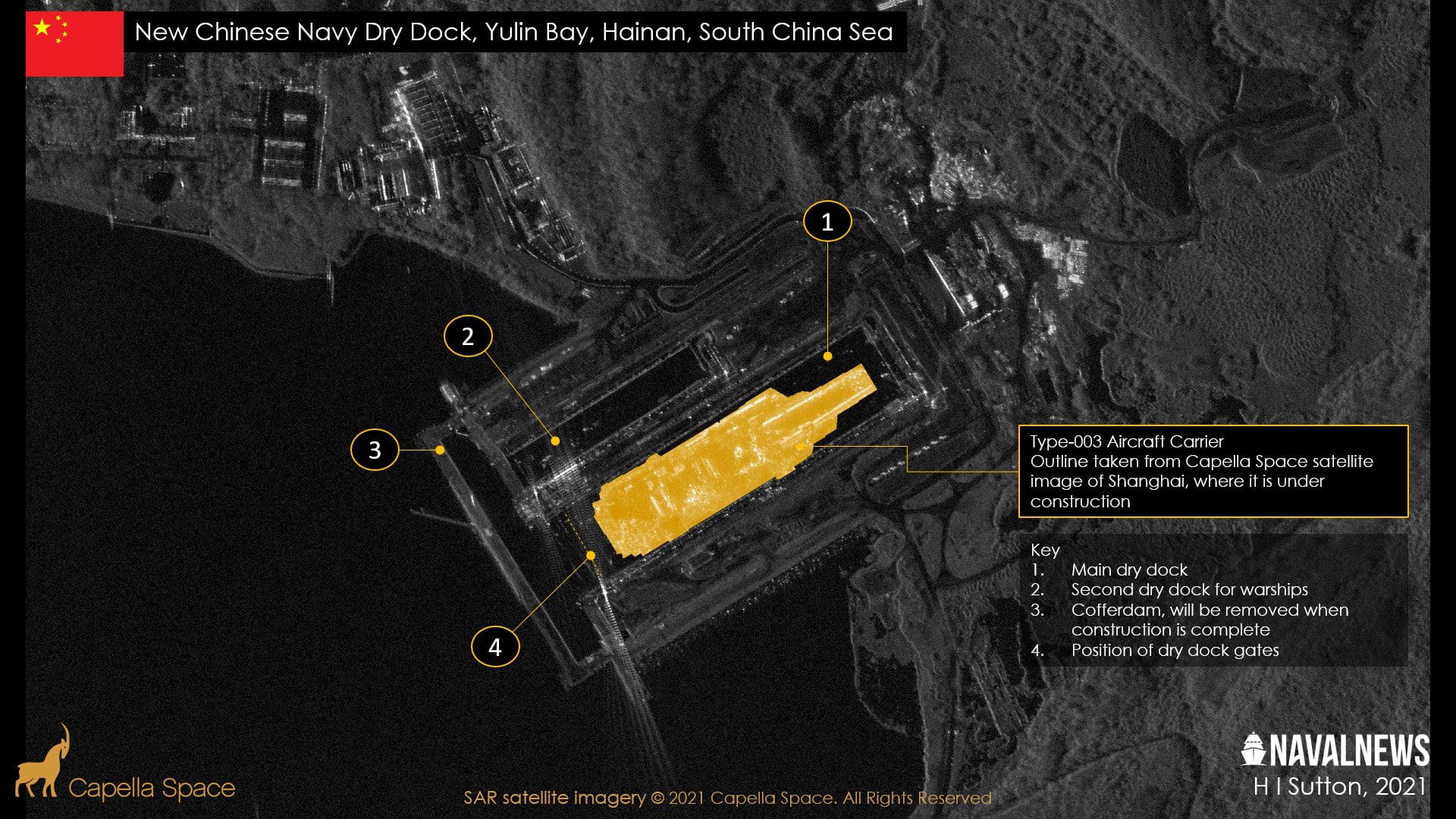 Siguiendo lo comunicado por Naval News, las imágenes de los satélites SAR (Synthetic Aperture Radar) propiedad de Capella Space han permitido comprobar el progreso del portaaviones a través de las nubes que impedían la visión diariamente desde otros satélites. Según parece, el último diseño es comparable con los portaaviones de la Marina de los Estados Unidos: precisamente, el Type-003 que actualmente se encuentra en construcción cerca de Shanghai, es comparable con la Clase Ford perteneciente a EE.UU.
