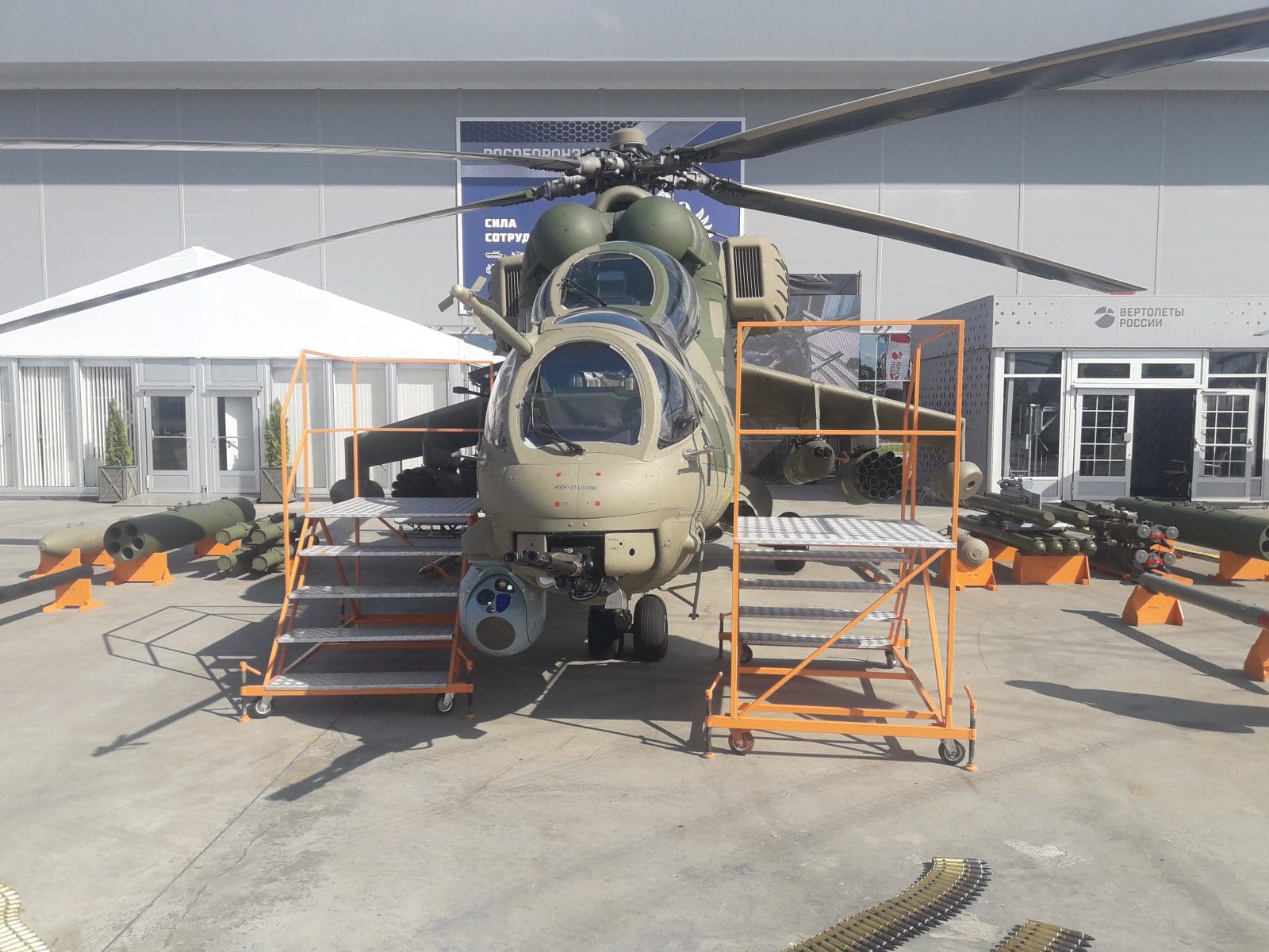 Al mismo tiempo, Rosoboronexport S.A. está lista para facilitar una información exhaustiva sobre los modelos del armamento, material y equipos militares rusos que se exhiben en el marco de la feria. Se trata, en concreto, de los aviones de caza Su-35, Su-30SME y MiG-35, los helicópteros Mi-35М, Мi-171Sh y “Ansat”, así como de modernos medios aéreos de destrucción.