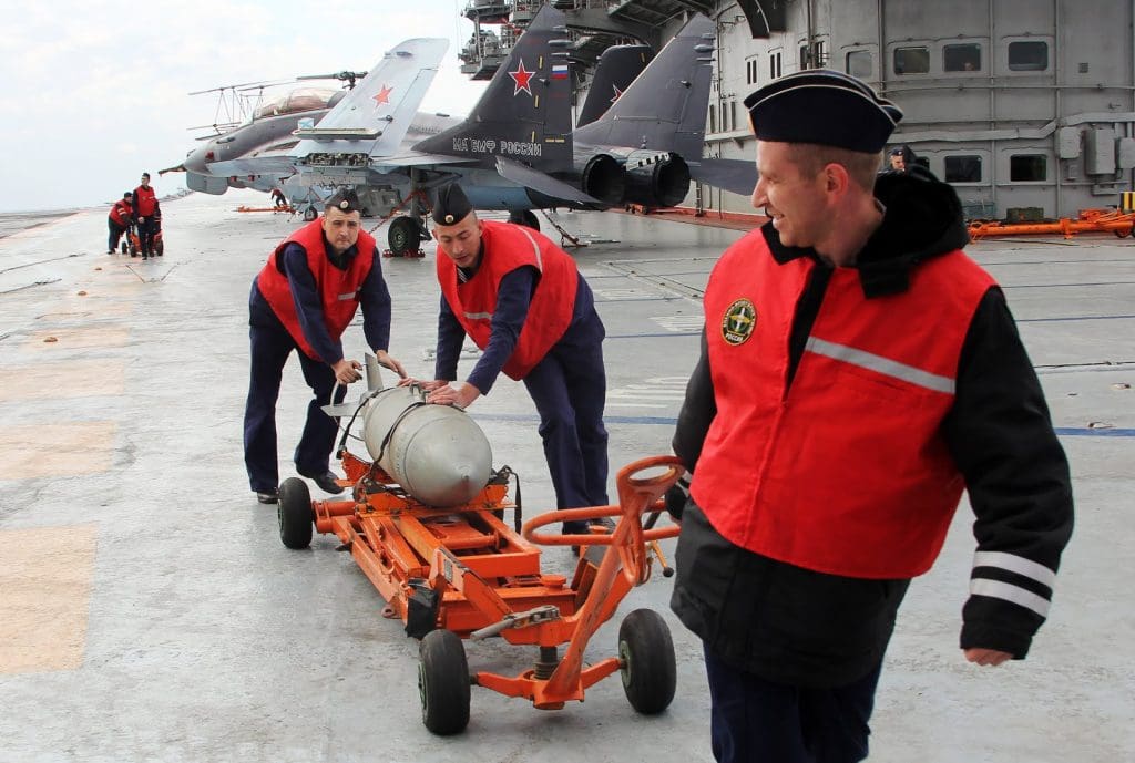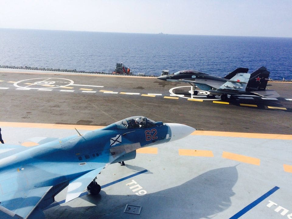 El grupo de combate encabezado por el portaviones Almirante Kuznetsov llego a las costas de Siria el 8 de noviembre de 2016 para reforzar el grupo aéreo ruso, basado en el aeródromo de Hmeymim. Los cazas embarcados MiG-29KR y Su-33 comenzaron sus vuelos sobre Siria el 10 de noviembre de ese año e iniciaron los ataques sobre las posiciones y puntos de control de los yihadistas desde el 15 de noviembre.