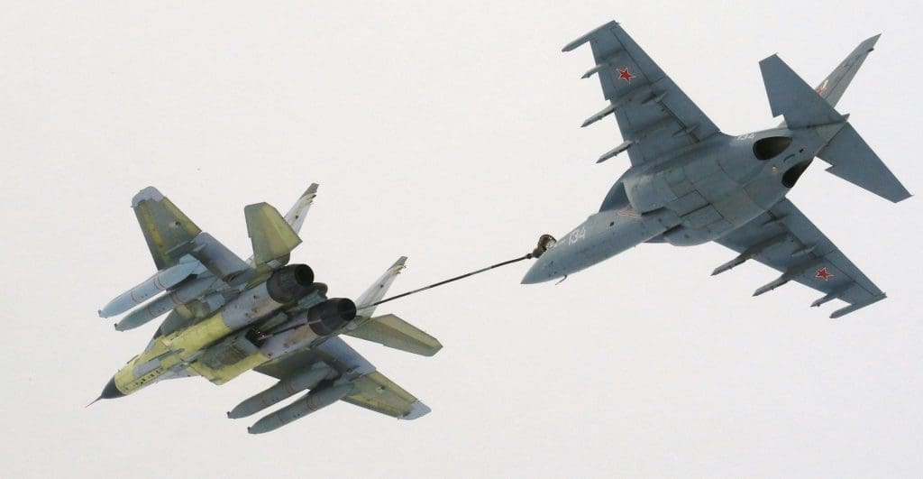 Aparte de tanques de combustible externos, el nuevo MiG-29K también pueden llevar el contenedor de reabastecimiento en vuelo UPAZ-1MK. Equipado con el contenedor UPAZ-1MK entre las góndolas motrices y cuatro tanques de combustible en los soportes subalares, el MiG-29K puede actuar como cisterna de reabastecimiento en vuelo para el resto de las aeronaves del ala aérea embarcada.