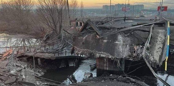 Por su parte, desde el Estado Mayor de las Fuerzas Armadas Ucranianas reportaron acciones con el objetivo de retrasar el avance ruso hacía la capital. En este sentido fueron informados las destrucción de puentes sobre el río Teteriv, cerca de Ivankiv, para cortar una de las rutas de avance posible de las columnas blindadas rusas. Además, fue reportado la voladura de los puentes que unen Bielorrusia con Ucrania, ubicados entre el puesto de control “Kamaryn” (Bielorrusia) y el puesto de control “Slavutich” (Ucrania). A su vez, estas acciones no se han limitado a puentes sino que diversas fuentes indican que fueron destruidas vías férreas.