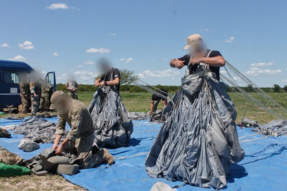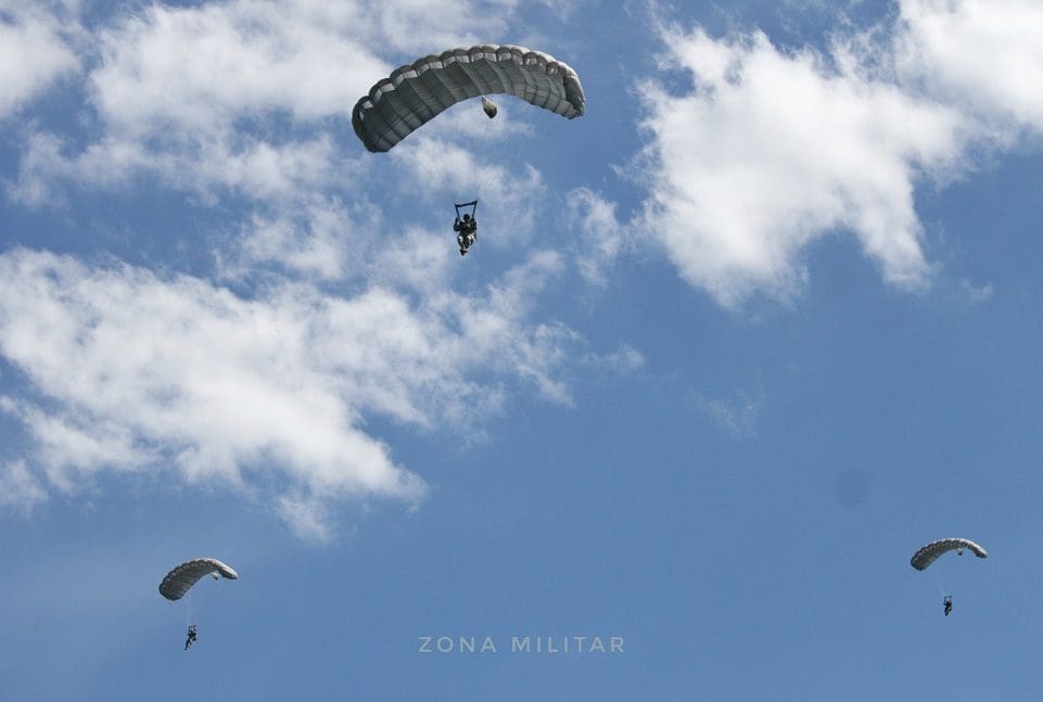 En el transcurso de la galería, podemos notar el proceso de preparación de los equipos correspondientes de paracaídas manuales, para finalizar con los exitosos saltos que se realizaron a altitudes de 8.000 y 12.000 pies. Al término del ejercicio, se preparan los plegados de los paracaídas tal y como se observa en la última imagen.