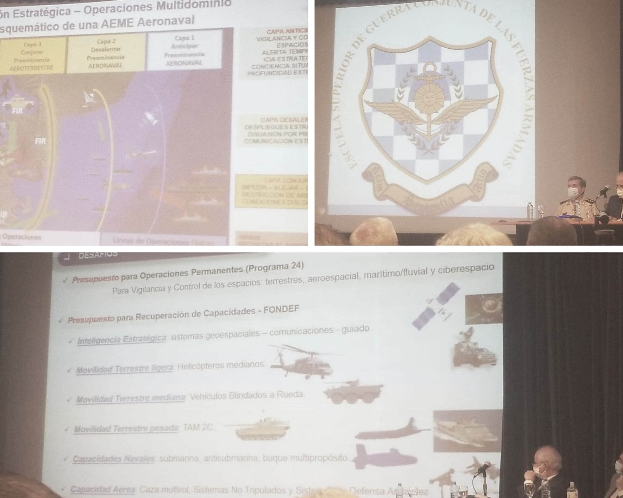 Para finalizar el acto, expuso el Teniente General Juan Martin Paleo, quien ahondó su disertación en el ámbito del planeamiento militar en el cual se encuadraran las distintas fuerzas armadas. Dando nuevas precisiones sobre una gran estrategia argentina en materia de Defensa Nacional, el Jefe de Estado Mayor Conjunto puso en relieve los puntos centrales desde donde se tiene que apoyar la defensa de nuestro territorio y los intereses vitales argentinos. En ese sentido aclaró que la estrategia se basa en Operaciones Multidominio, incluyendo distintos campos: el de la Inteligencia Estratégica, el cibernético, el espacio electromagnético, la preparación territorial, el rol de los Sistemas Aéreos No Tripulados, las Fuerzas de Operaciones Especiales y las reservas como elementos de fuerzas de respuestas territoriales. Cada uno de estos puntos esta cruzado por distintos elementos y capacidades. En función de esto, aclaró cuales serán los ejes de las capacidades militares de cara al futuro, entre sistemas de armas aéreos, navales y terrestres, además de lo virtual, las comunicaciones, y las operaciones de “restricción de área”, con sello argentino.