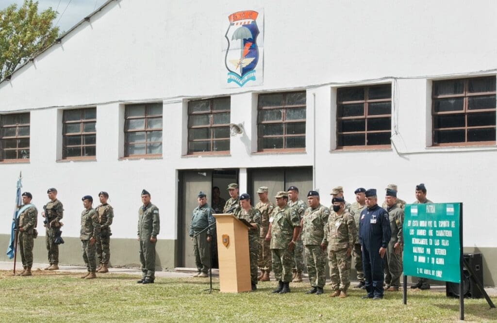 En sus palabras dirigidas a sus subalternos destacó que “Ese mismo espíritu está presente hoy aquí, anidando en cada “comando” que luce con orgullo el emblema del paracaídas y el cuchillo en su frente, y es el mismo que nos alienta para encarar cada desafío que el tiempo actual nos presenta, que nos exige también, dar la vida. De una sola vez como nuestros héroes, o de a poco y a cuentagotas en el diario trajinar, pero entregándolo todo siempre.”