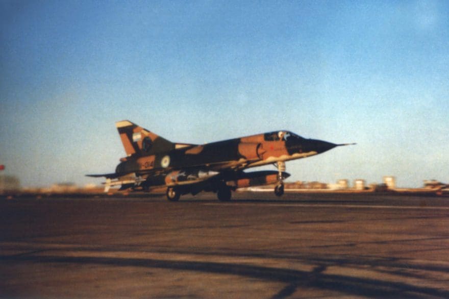 OF 1214, tres (3) Mirage V, indicativo DAGA, en misión de ataque aire superficie armados con una bomba MK 17. Arriban a la zona del objetivo sin encontrar el blanco. Arriban a las 16:20