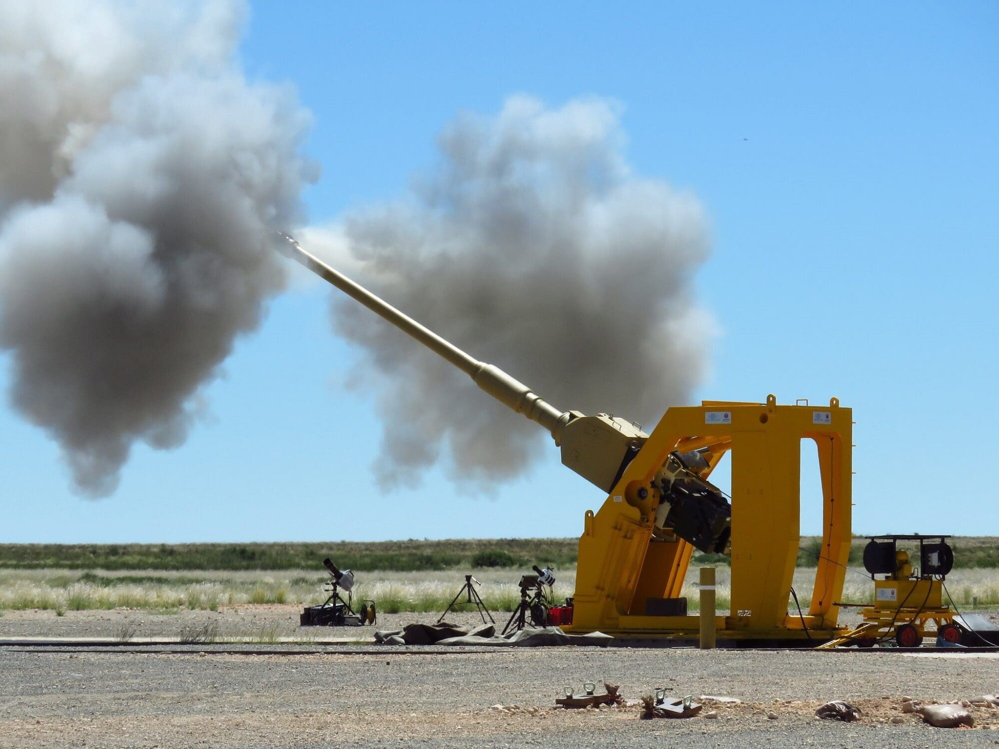 Ni ahí de informar sobre el calibre del cañón,se supone de 155 mm o más ,largo alcance por el largo del tubo,