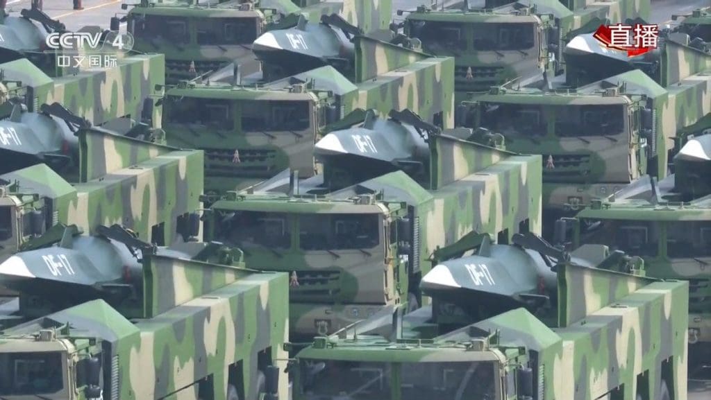 El sistema de misiles de medio alcance DF-17 (Dongfeng-17) es un desarrollo del sistema DF-16. Su misil balístico utiliza un planeador hipersónico DF-ZF como ojiva, capaz de maniobrar a velocidades de hasta Mach 10 (12.300 km/h).