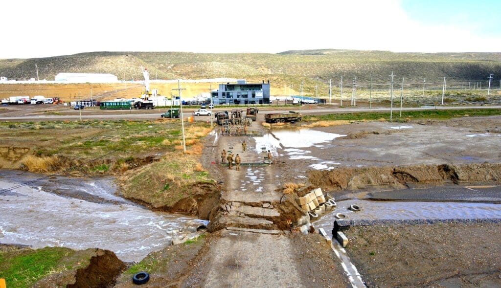 Con motivo de las inundaciones que afectan a Comodoro Rivadavia, ingenieros del Ejército Argentino efectuaron la instalación de un puente “Bailey” en tareas de apoyo a la comunidad. Estas acciones fueron dispuestas por el Ministerio de Defensa de la República Argentina, a través del Comando Operacional de las Fuerzas Armadas.