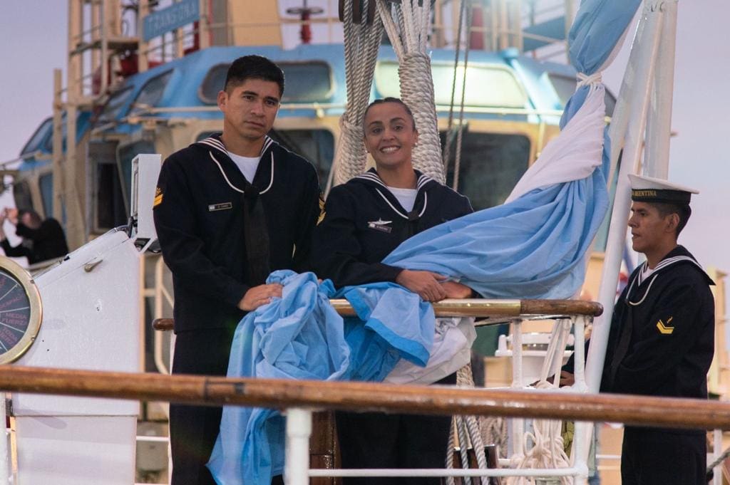 Específicamente, su tripulación se conformaba por 28 Oficiales, 92 Guardiamarinas en Comisión; 191 Suboficiales; e invitados de los Liceos Navales Almirante Storni y Almirante Brown; personal del Ejército Argentino y la Fuerza Aérea Argentina; personal de Gendarmería Nacional y Prefectura Naval; del Instituto del Servicio Exterior de la Nación; y 12 invitados adicionales de Armadas extranjeras.