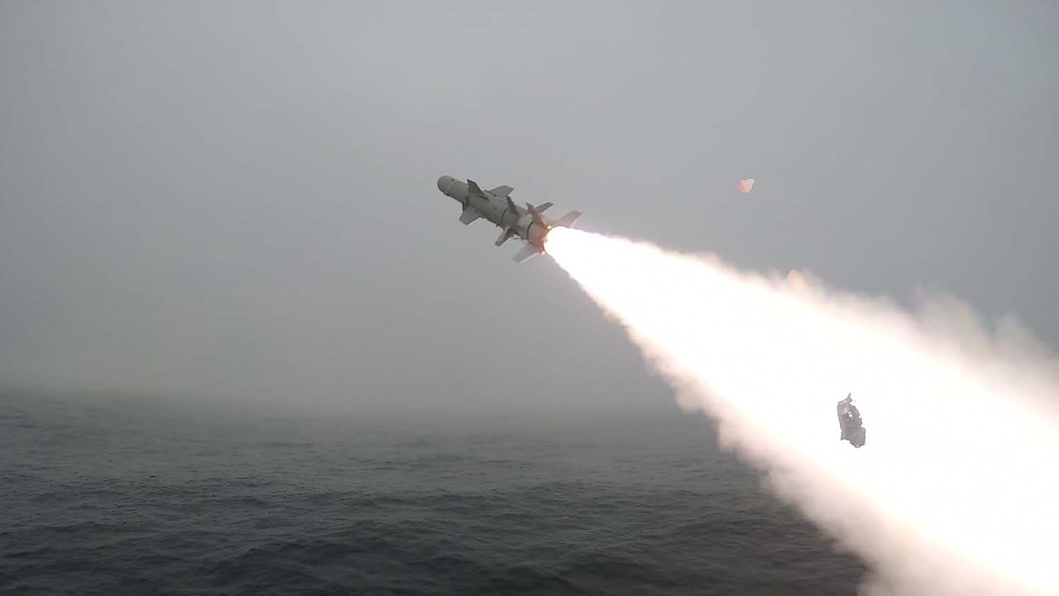 De esta forma, la fragata HMS Westminster (F237) disparó dos misiles RGM-84D Harpoon contra el ex USS Boone; siendo el primer lanzamiento de este misil en salvas por parte de la Royal Navy desde el año 2004. Mientras tanto, un P-8 Poseidon también lanzó uno de sus misiles AGM-84 Harpoon contra el objetivo.  A su vez, desde la Marina de los Estados Unidos informaron que el USS Arleigh Burke (DDG 51) atacó al ex USS Boone empleando un misil anti-superficie SM-6.