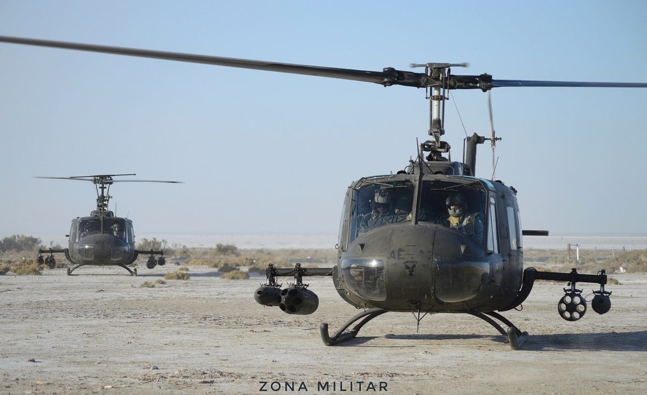 Una vez despejado el espacio aéreo y autorizada la actividad, los Huey iniciaban la acción: en las primeras jornadas fue la práctica con ametralladoras 7,62mm, a lo cual le siguió el esperado tiro con cohetes de 105mm. El despliegue tuvo como cierre la demostración realizada a las autoridades del Ministerio de Defensa y de las FFAA, ocasión para la cual también se realizó tiro con munición de guerra.