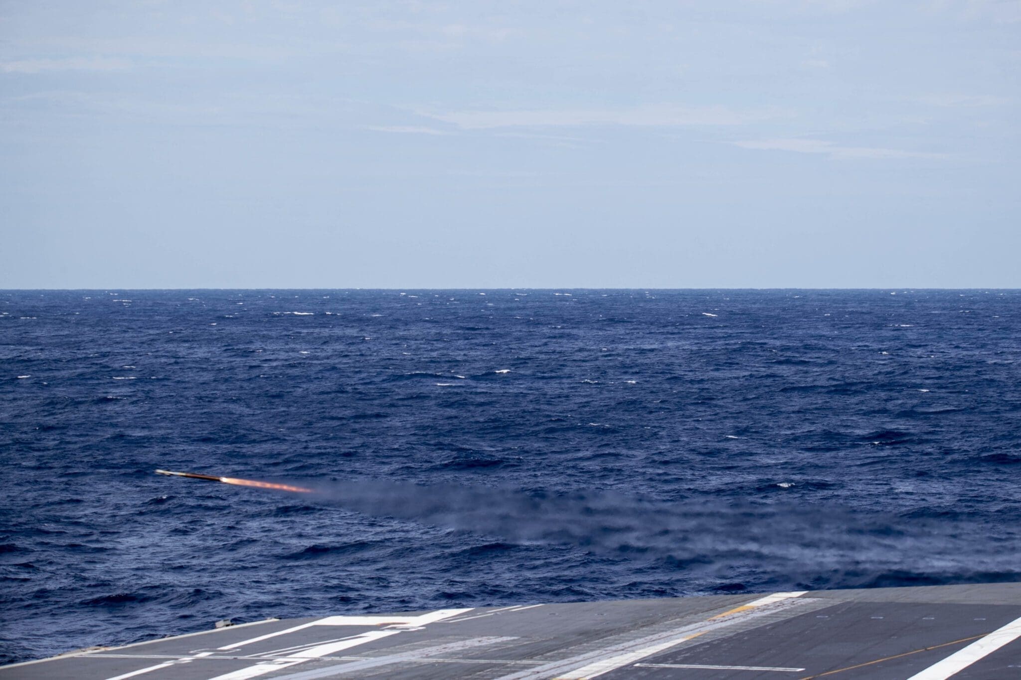 En lo que se refiere a preparación previa, fue reportado también que el portaaviones USS Gerald R. Ford realizó pruebas y ejercicios de tiro empleando sus sistemas de defensa antiaérea. Los mismos comprendieron el disparo de misiles RIM-116 Block 2; siendo completadas el 24 de septiembre. Estas actividades complementaron a las observadas en el mes de julio, en el cual fue realizado un ejercicio de preparación operativa del sistema de combate del buque.
