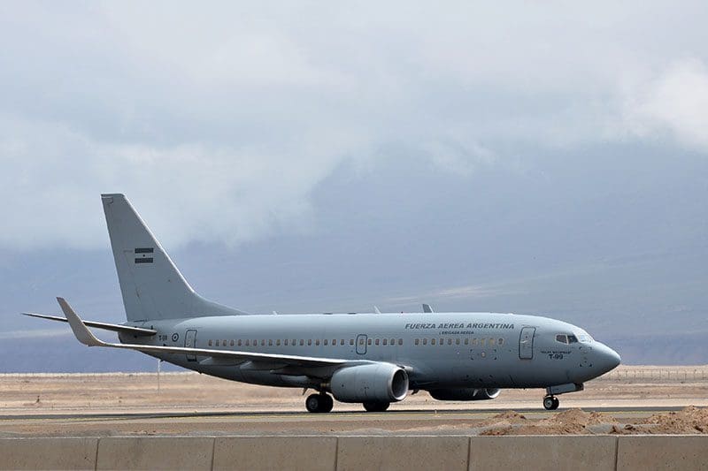 - 1 Boeing 737-700 T-99 Islas Malvinas Grupo 1 de Transporte Aéreo de la I Brigada Aérea.