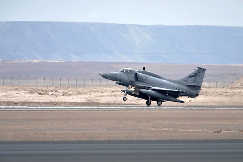 - 3 cazabombarderos A-4AR Fightinghawk del Grupo 5 de Caza de la V Brigada Aérea de San Luis.