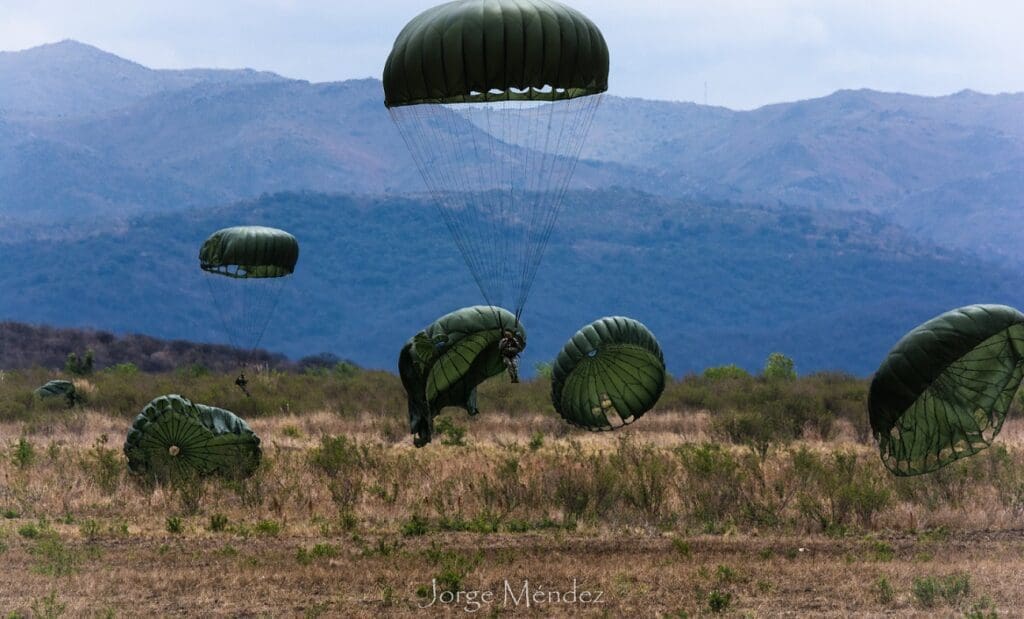 Durante la jornada de ayer, la Brigada Aerotransportada IV del Ejército Argentino nuevamente llevó a cabo ejercicios de aerocooperación combinada en la provincia de Córdoba. La particularidad de esta ocasión consistió en la participación de personal extranjero así como el lanzamiento masivo de paracaidistas, operación que se ejecutó en simultáneo con dos C-130H Hércules de la Fuerza Aérea Argentina, pertenecientes a la I Brigada Aérea.