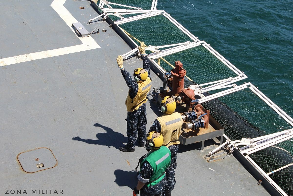 Más precisamente, según lo expresado por el Segundo Comandate Capitán de Fragata Guillermo Daniel Ortega, el procedimiento VERTREP es coordinado junto al puente de Comando del ARA Almirante Irizar: en esta ocasión el helicóptero en cuestión se acercó por la banda de estribor (siempre debe ser a proa del viento); el puente de Comando habilita a las aeronaves para aproximarse a la cubierta de vuelo; los encargados de realizar el trinqueo en la cubierta de Vuelo tocan la aeronave con el gancho para quitar la estática de la misma; colocan el chinguillo con los dos tambores; el señalero da el OK para salir, y la aeronave asciende y hace una vuelta; y vuelve para realizar el mismo procedimiento pero a la inversa. Dentro de cada aeronave se cuenta con evaluadores que, justamente, evalúan el procedimiento que resulta de manera exitosa cuando el helicóptero puede colocar la carga en el centro del soporte o “cama” naranja que se observa en las fotografías.