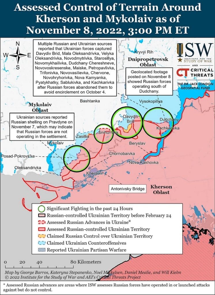 La credibilidad del ejército de Putin en Ucrania se ve nuevamente amenazada. Ya salieron corriendo de Jarkov, ahora se van de Kherson. No entiendo por qué Rusia no usa toda su panoplia de armas contra Ucrania. Hay puntos fuertes ucranianos que podrían ser fácilmente eliminados con las FOAB. No se por qué los rusos se autolimitan respecto al armamento a usar en Ucrania. Los ucranianos desconfían de los rusos, tal vez si avanzan sobre la costa del Dniper, los rusos terminen reventando la presa aguas arriba y los inunde hasta el cuello. Veremos cómo evoluciona esto.