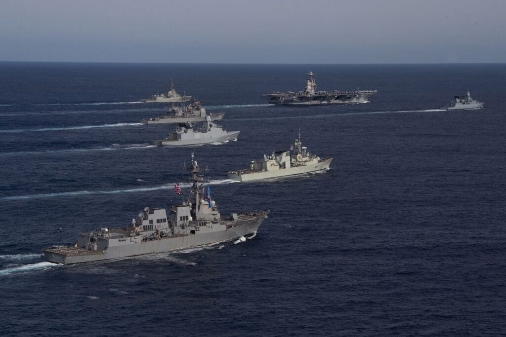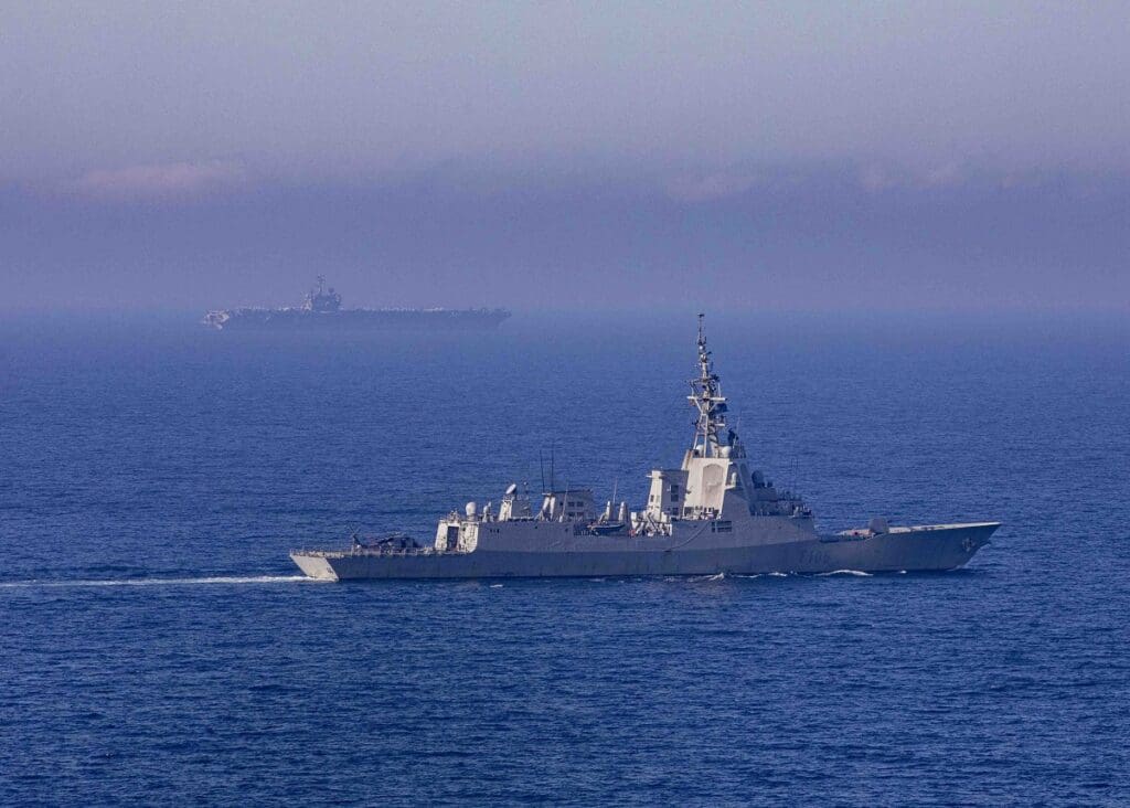 Hasta hace unos días, la escolta del Ford también estuvo integrada por diversos buques de países de la OTAN, en el marco del ejercicio “Silent Wolverine”. Participaron la fragata alemana Hessen F-221, la fragata danesa Peter Willemoes FFH 362, la fragata canadiense HMCS Montreal FFH 336, la fragata de la Armada Española Álvaro de Bazán F-101, las fragatas neerlandesas Zr.Ms. De Zeven Povincien F 802 y Zr.Ms. Van Amstel F 831 y la fragata francesa Chevalier Paul D 621.