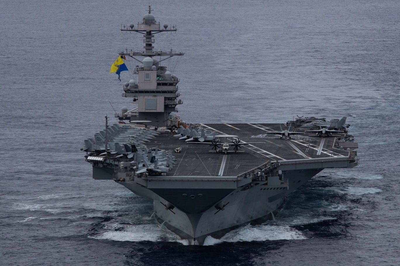 Por su parte, el Gerald R. Ford, el portaaviones más moderno de la US Navy, está realizando su primer despliegue operativo junto a al Ala Aérea Embarcada 8 y una escolta integrada por el crucero USS Normandy CG-60 y los destructores USS Thomas Hudner DDG-116, USS Ramage DDG-61, USS McFaul DDG-74. El grupo de ataque cuenta con el apoyo de los buques logísticos USNS Robert E. Peary T-AKE-5 y el USNS Joshua Humphreys T-AO-188.