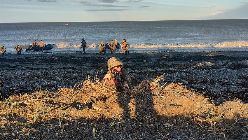Frente a las costas de la localidad de Rio Grande, Tierra del Fuego, el Batallón de Infantería de Marina 5 (BIM 5) de la Armada Argentina realizo actividades con el apoyo de la Sección Botes de Asalto del BIM 4 y del Destacamento Naval Río Grande. En esta ejercitación se realizaron procedimientos de técnicas de operaciones anfibias en las playas de la ciudad. La actividad se desarrolló en el marco del adiestramiento en técnicas de operaciones anfibias del BIM5 y de la etapa final del Curso de Operadores de Botes de Asalto del BIM4.