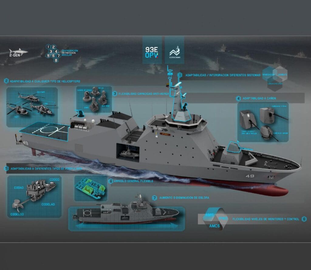 Se trata, en primer lugar, de un patrullero oceánico del tipo OPV 93 C, que venía siendo ofrecido por el astillero colombiano desde el año 2018, año en el cual fue publicitado por la página oficial de Cotecmar en Youtube, sin que se hubiera tomado decisión por parte de los almirantes o dirigentes de la época la adquisición. Se trata de un patrullero de altura de alrededor de 2550 toneladas de desplazamiento y que supera las capacidades de las Fassmer OPV 80 ya en servicio de la Armada, siendo un desarrollo directo de este producto. Una de las principales diferencias es el aumento del tamaño de la nave, lo que permite, que sean incluidos nuevas capacidades en cuanto armamento y sensores, que pueden instalar misiles superficie-superficie, capacidades CIWS o misiles antiaéreos de corto alcance, como los Mistral o incluso sistemas de torpedos livianos antisubmarinos, lo que convertiría la nave en una Corbeta de acuerdo a la clasificación de buques internacional. Naturalmente todavía se desconoce el armamento a ser instalado. Dentro de la información básica suministrada por Cotecmar encontramos lo siguiente: Eslora 93 metros, Manga 14 metros, Puntal 7 metros, Calado 4.1 metros, Velocidad 20 nudos, tripulación 64 + 36, Autonomía hasta 40 días, Alcance 10000 MN a 12 nudos y potencia 9600 kw.