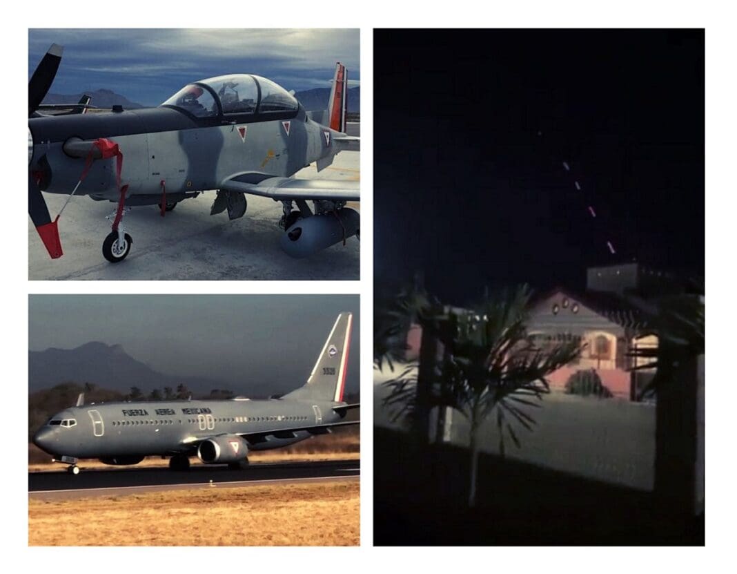 Para el caso de los Black Hawk, se desconoce a que fuerza pertenecen ya que tanto la Fuerza Aérea, Marina como Policía Federal y Guardia Nacional cuentan con estos helicópteros. Si se logra distinguir el uso diurno y nocturno de ametralladoras M134, comúnmente denominadas minigun, en misiones de apoyo aéreo. Misma imagen se repitió con al menos un T-6C+ Texan II, aeronave que es de dotación tanto en la FAM como en la Aviación Naval. Vale destacar que las bandas criminales que integran los cárteles poseen un considerable poder de fuego, desde ametralladoras 12,7mm pasando por fusiles anti-material del mismo calibre, los cuales representan una considerable amenaza para los medios aéreo mencionados.