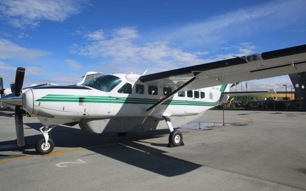 - Un Cessna Textron 208 B Gran Caravan. Avión de enlace ampliamente utilizado en Colombia por todas las fuerzas militares incluyendo la Policía, apto para la complicada geografía colombiana, económico, fiable, con mantenimiento a través de la CIAC, que funciona como ambulancia y de bajo coste operacional. Es una excelente opción para la aviación, con amplia experiencia e incluso un simulador para la enseñanza operado por la Fuerza Aérea Colombiana. Características principales Tripulación: 1 piloto, Capacidad 9 a 14 pasajeros, Carga 1315 kg, Longitud 12,7 m, Envergadura 15,9 m, y Altura 4,3 m.