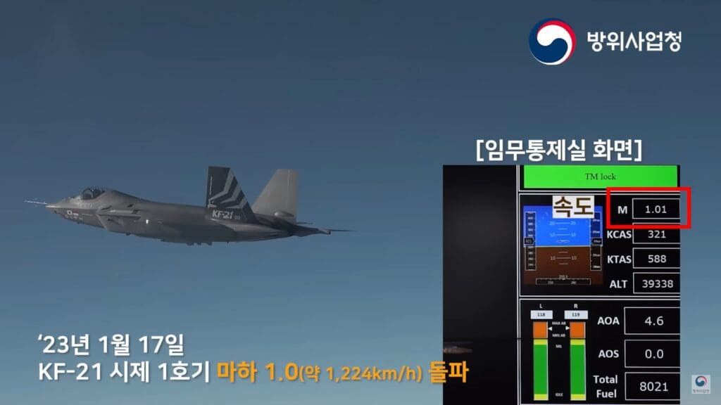 En este sentido, en el día de la fecha, 17 de enero, uno de los prototipos del programa KF-21 Boramae realizó la más reciente prueba de vuelo del caza. Según lo reportado por DAPA, la aeronave efectuó un vuelo a una altura aproximada de 40.000 pies donde acelero sus motores para alcanzar romper por primera vez la barrera del sonido. En base a lo informado, el nuevo caza alcanzó una velocidad en esta prueba de Mach 1.0, equivalente a 1.224 Km/h.