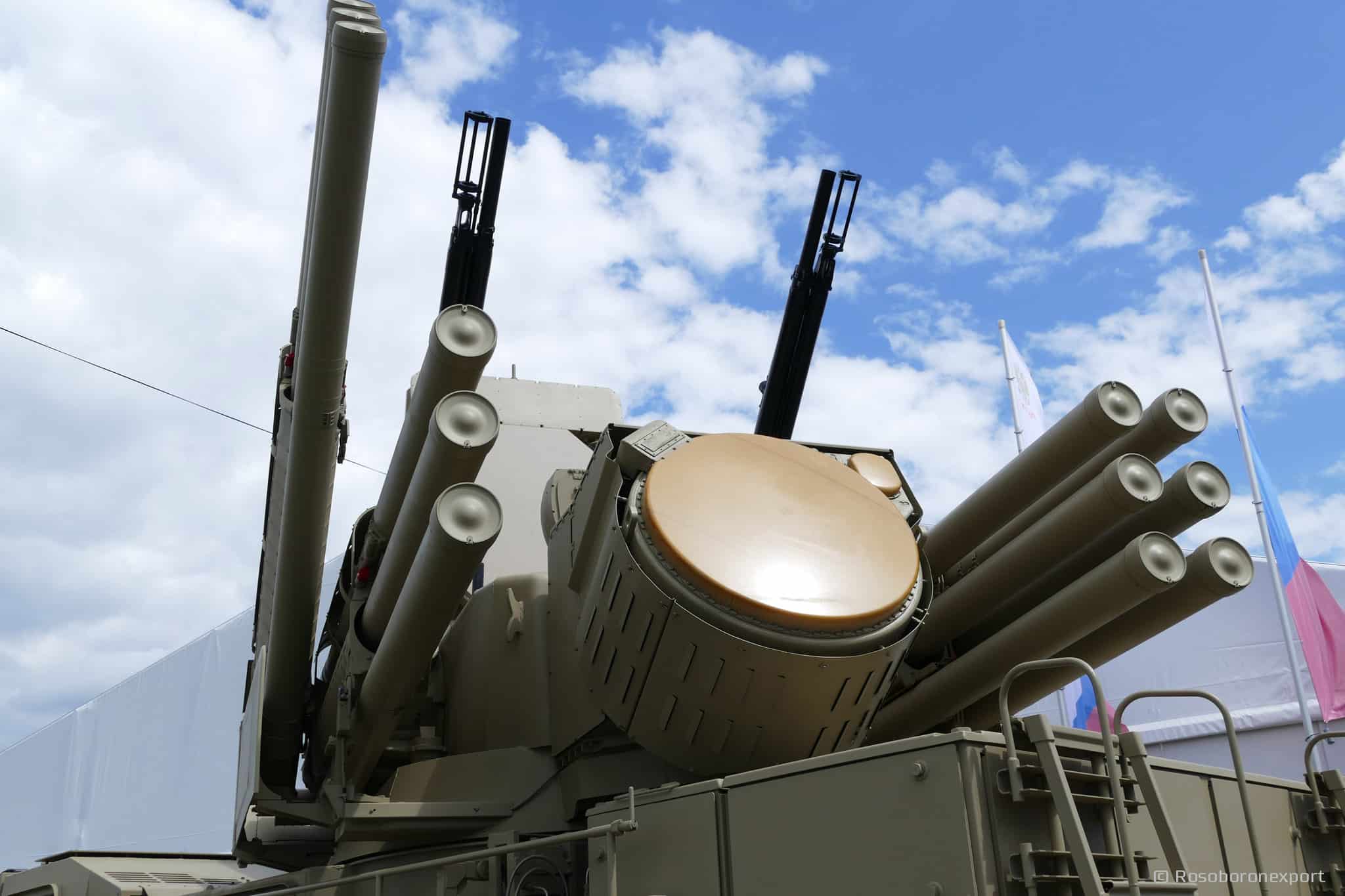 En lo referido al Panstir-S1, es un sistema de defensa aérea del tipo autopropulsado (montado en un camión 8×8) contando con la capacidad de ser configurado con hasta doce lanzadores de misiles 57E6 y dos cañones 2A38M de 30 mm. El alcance máximo de los misiles contra cazabombarderos (volando a una altitud de 10km) es de unos 20km, mientras que los cañones pueden batir efectivamente objetivos a distancias de hasta 4km volando a una altura de hasta 3km. El sistema de detección y seguimiento de blancos del Pantsir-S1 está compuesto por un radar PESA para adquisición de blancos, el cual cuenta con un alcance de detección de entre 32 a 36 kilómetros, un radar de traqueo y un sistema EO/IR complementario.