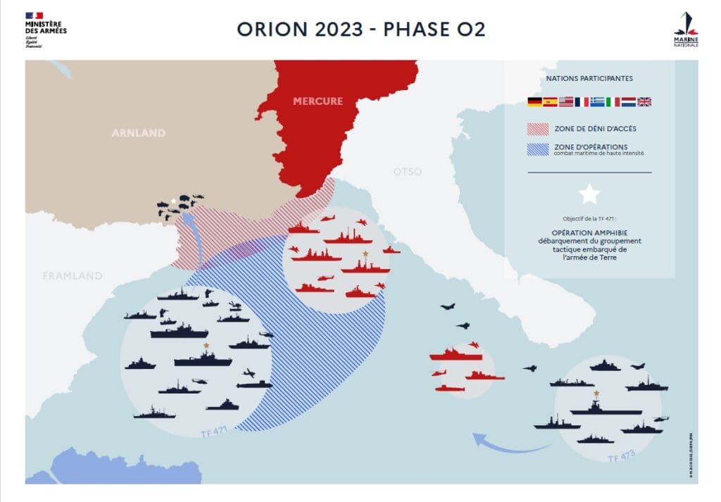 “ORION 2023” es un ejercicio sin precedentes, que responde a los desafíos de los conflictos modernos, en el cual tomarán participación miles de efectivos franceses y extranjeros. Las actividades operacionales se extenderán desde febrero hasta mayo de 2023. Según lo informado por el Ministerio de Defensa, “ORION 23” constituye el primer hito de un ciclo trienal “Conflictos Modernos” concebido por el Estado Mayor de las Fuerzas Armadas para reforzar la preparación operativa conjunta.