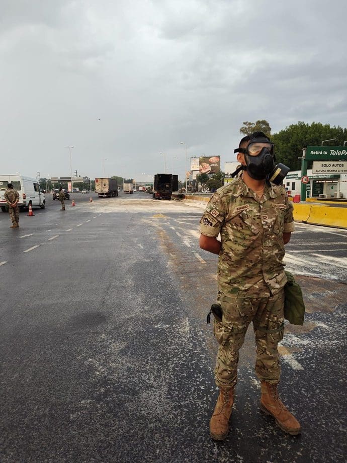 Según informara un comunicado oficial, la Compañía de Ingenieros Química, Biológica y Nuclear y Apoyo a la Emergencia 601 del Ejercito Argentino se encuentra brindado apoyo en la localidad de Ituzaingó (provincia de Buenos Aires), ante el derrame y combustión de un agente químico que se produjo en el Acceso Oeste.
