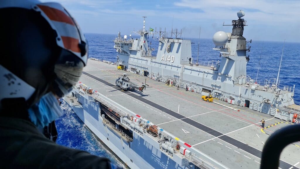 Incorporado a la flota en el año 2018, el buque multipropósito “Atlántico” A-140 constituye la principal unidad de superficie de la Marina de Brasil. Entre las capacidades que aportará para este despliegue se encuentran seis helicópteros de transporte y disponibilidad de 3 lanchas de desembarco de vehículos y personal. Sus instalaciones alojarán un Equipo de Emergencia del Centro de Medicina Operativa compuesto por 28 médicos y militares del área de salud de diferentes especialidades, un Centro Médico multiservicio y un Grupo Operativo con 180 Infantes de Marina con maquinaria para asistir en la limpieza de rutas y otras necesidades.