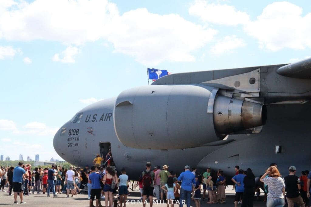 La muestra, a cargo de la misión de Air Mobility de la USAF, permitió al publico asistente y prensa realizar una recorrida de uno de los principales aviones de transporte, que desde hace más de 30 años presta servicio en 7 países y el SAC (Strategic Airlift Capability) con un total de 279 unidades construidas.
