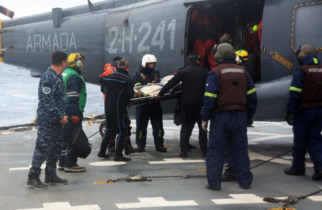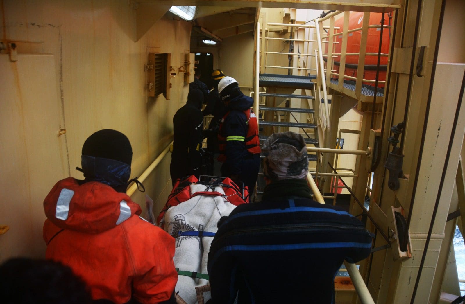 Siguiendo lo reportado por la Armada Argentina, el encuentro entre los dos buques fue realizado en horas de la noche del día de ayer, 10 de marzo, a una distancia de 350 millas náuticas (640 kilómetros aproximadamente) en una localización registrada al este de la Isla de los Estados. Las tareas de evacuación médica fueron realizados por un helicópteros Sea King del Comando de Aviación Naval, el cual traslado al herido a bordo del rompehielos Almirante Irizar, donde recibió una atención medica de mayor complejidad.