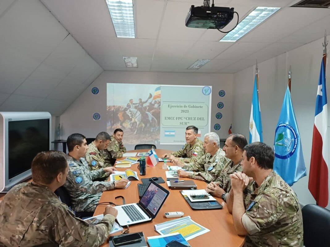 Desde el pasado mes de febrero, con la incorporación del personal militar de las Fuerzas Armadas de Chile, conformado por el Coronel Juan Ignacio Rubio Richasse y Teniente Coronel Ricardo Felipe Guzmán Uribe del Ejército de Chile, el Capitán de Fragata (IM) Francisco Javier Cabezón González, el Suboficial (IM) Eugenio Calderón Olivares de la Armada de Chile y el Comandante de Grupo Gonzalo Martínez Barrios de la Fuerza Aérea de Chile a la sede de este Estado Mayor en Campo de Mayo, se reanudaron las actividades presenciales del Estado Mayor Conjunto Combinado “Cruz del Sur” tras haber sido parcialmente interrumpidas por la pandemia de COVID-19.