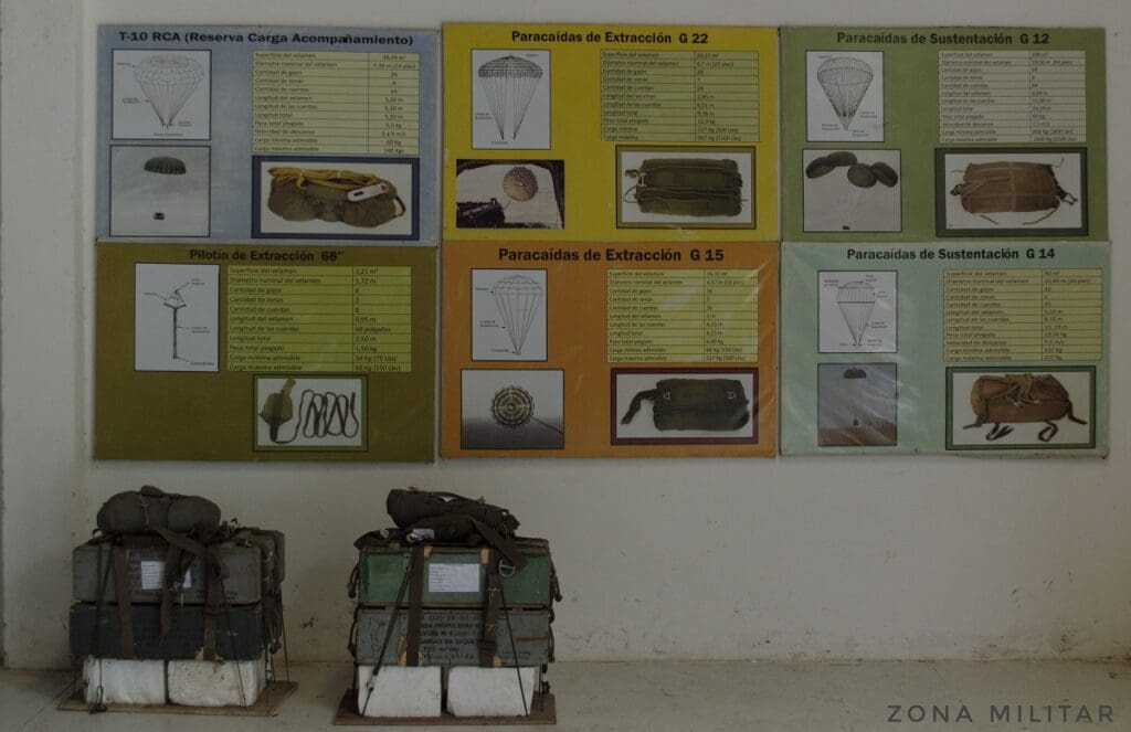 Actualmente, la Sala Paracaídas Personal cuenta con los paracaídas de apertura automática MC1- 1D de origen estadounidense y brasilero. Para el caso de los de apertura manual, se dispone de los modelos MC5, JANUS 300 y los recientemente incorporados JANUS 400 multimisión dual tándem.