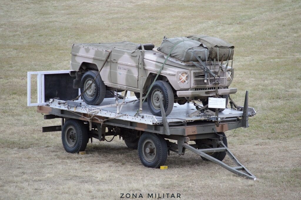 Una vez acondicionada la carga, se procede a realizar la prueba con la grúa y el gancho para apreciar coincidencia de los centros de gravedad En paralelo, se efectúa otro cálculo para establecer la cantidad de amarres necesarios, teniendo en cuenta que la plataforma, una vez que sale del avión, lo primero que liberará será el paracaídas de extracción.