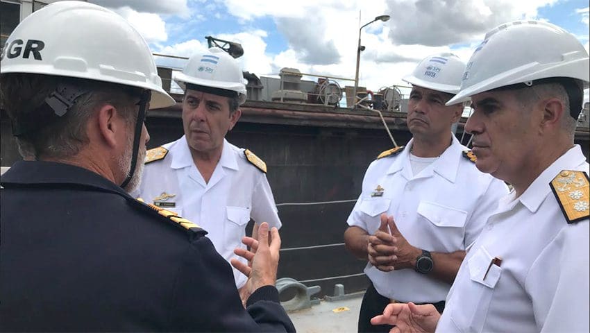 Formaron parte de la comitiva el Director General de Planes, Programas y Presupuesto de la Armada, Contraalmirante Marcelo Ricardo Flamini y el Director General de Material de la Armada, Contraalmirante Marcelo Jorge Calvete, junto al Comandante del Área Naval Atlántica, Contraalmirante Marcelo Luis Fernández; el Jefe del Arsenal Naval Mar del Plata, Capitán de Navío Daniel Rajcevic; y el Comandante de la División Patrullado Marítimo, Capitán de Navío Martín Edgardo Méndez, quienes acompañaron al JEMGARA.