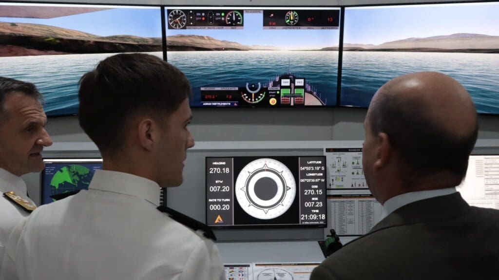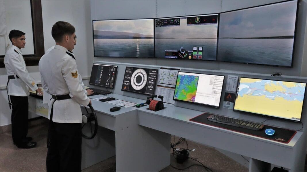Seguidamente afirmó “Hoy estamos inaugurando su versión más avanzada, que consta de 4 puentes de comando completos y una estación de instructor. Su diseño contempla todas las herramientas estándar de un puente de comando, entre las que encontramos una visual de tres pantallas, instrumental náutico, un radar Arpa, un sistema lector de cartografía electrónica, un girocompás, instrumental meteorológico y un sistema de comunicaciones puente”