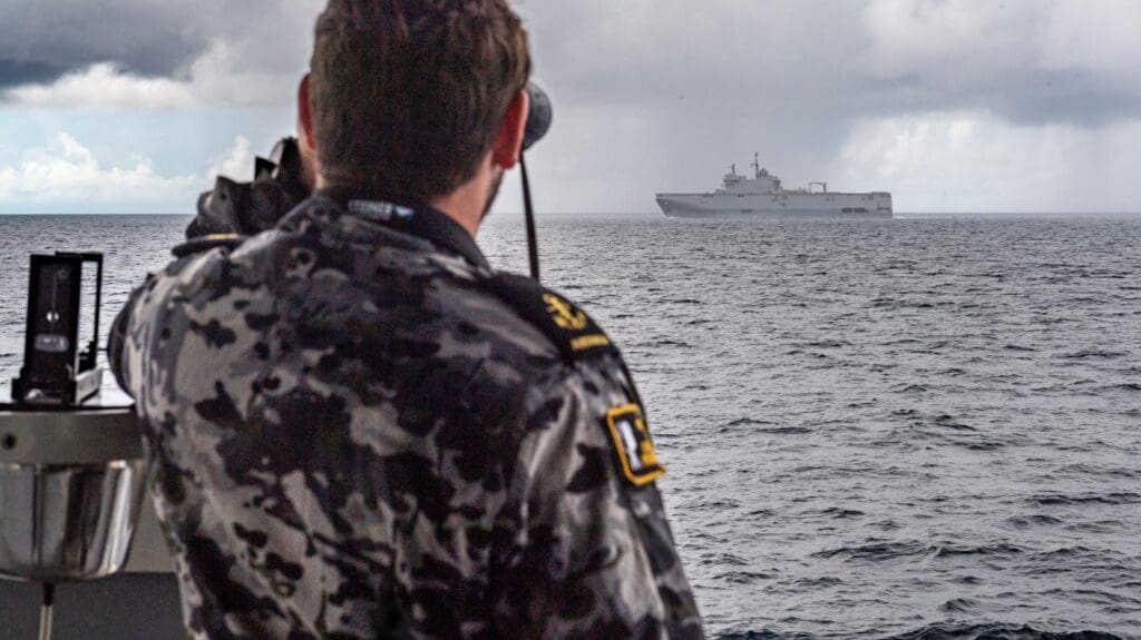 Según fuera informado por la Marina Nacional Francesa, entre los días 5 al 7 de abril se llevaron a cabo maniobras conjuntas con la Marina australiana (Royal Australian Navy (RAN) y la Real Fuerza Aérea Australiana (Royal Australian Air Force (RAAF). Los ejercicios, realizados en marco de la misión JEANNE D’ARC 2023, incluyo la participación de buques y aviones de ambas naciones.