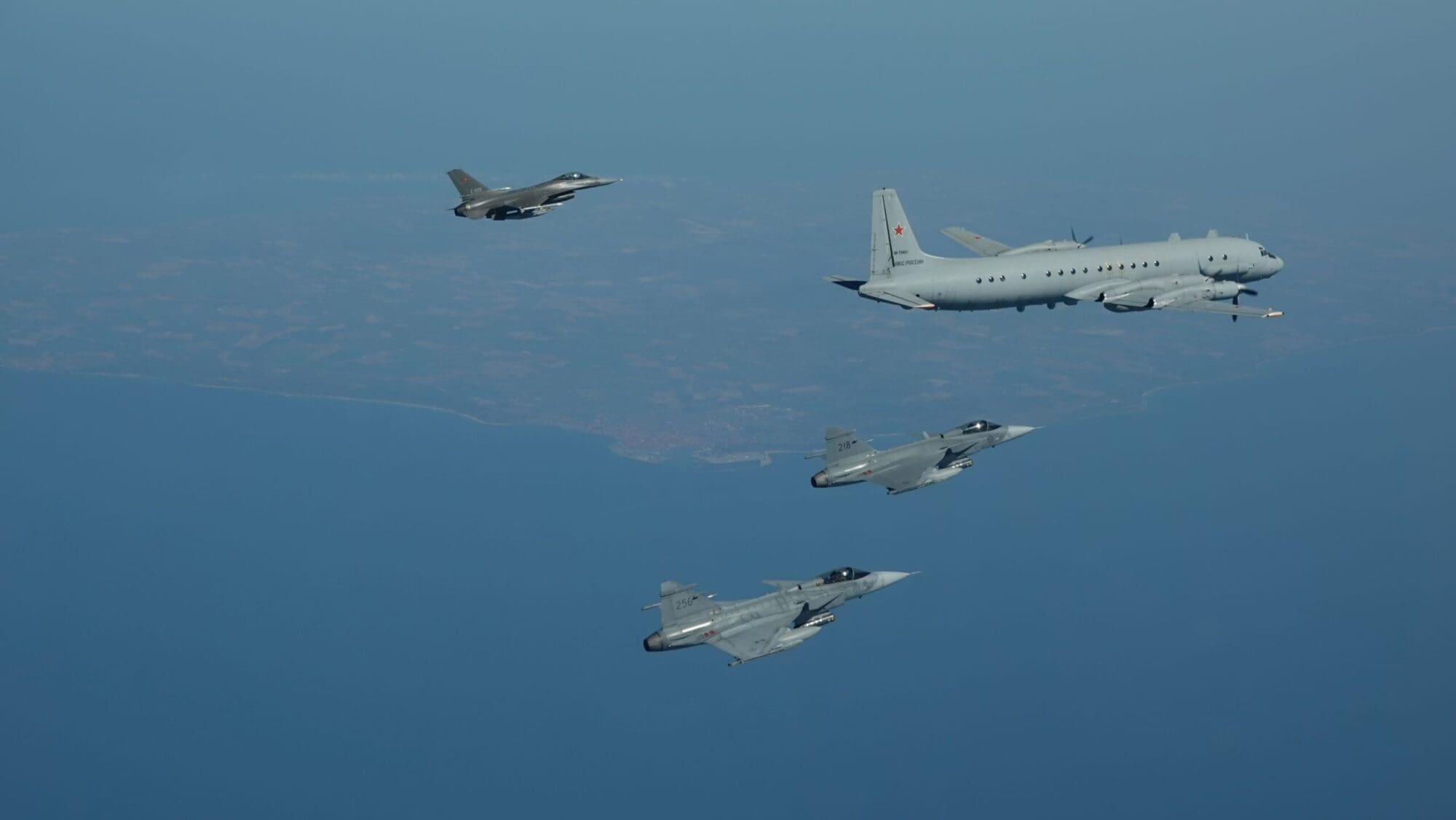 En base a lo informado, el contacto fue interceptado por las parejas de cazas F-16 y Gripen, fue identificado como una aeronave de inteligencia de señales Ilyushin Il-20, denominación OTAN Coot-A, sobre espacio aéreo del Mar Báltico, en una región comprendida entre Suecia, la Zelanda danesa y Bornholm.