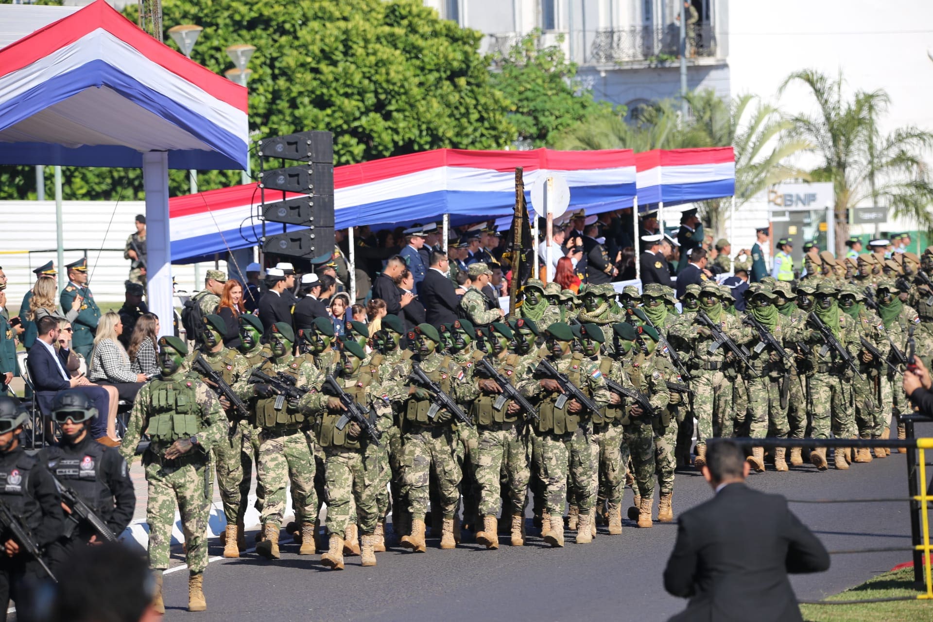 En honor a ese hecho, las Fuerzas Armadas y de Seguridad de Paraguay encabezaron un gran desfile en la Costanera de Asunción ayer domingo, donde las distintas ramas castrenses presentaron armas al presidente de la República, Mario Abdo Benítez y autoridades tanto militares como civiles en la explanada del Palacio de los López.