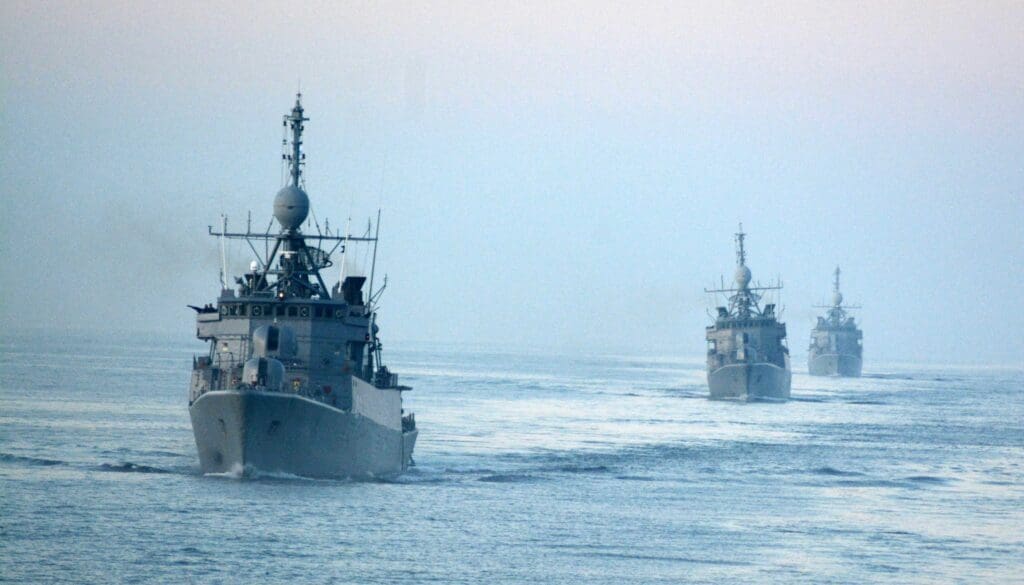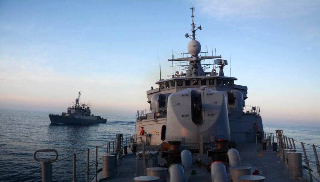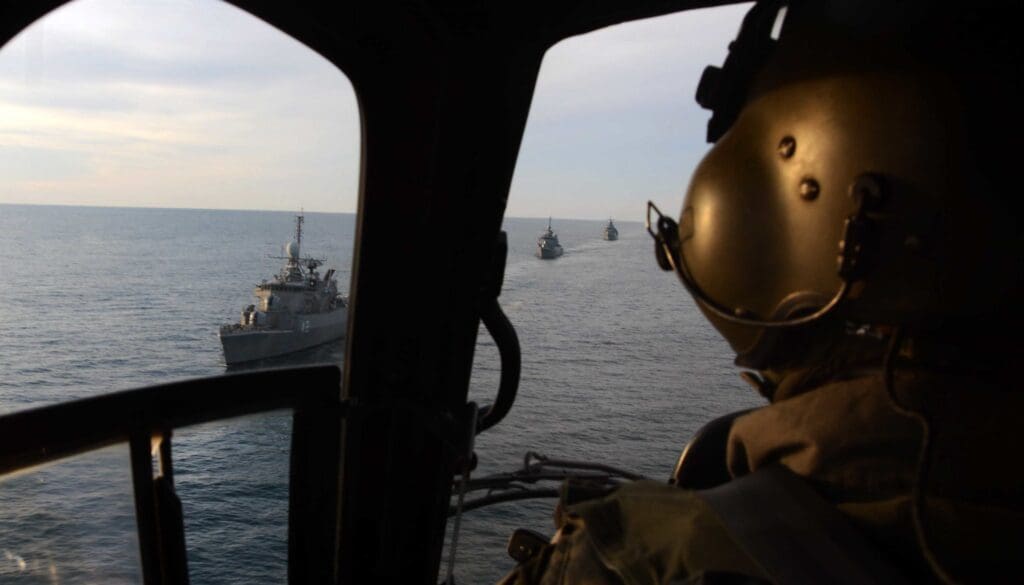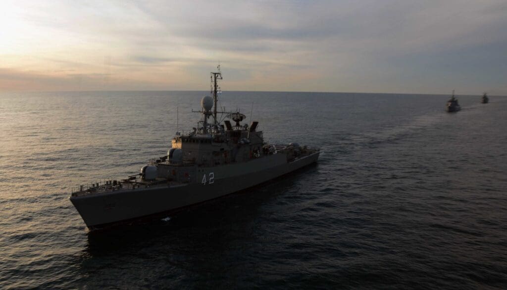 Luego se efectuó en el mar el encuentro de las unidades a dos bandos, donde el destructor “Sarandí” y la corbeta “Robinson” conformaban un conjunto operativo y las corbetas “Espora” y “Rosales” el otro, y bajo el control operativo del Comando de la Flota de Mar, a órdenes del Comandante de la DVDE, Capitán de Navío Rodrigo Gabriel Márquez, los navíos pudieron adiestrarse en técnicas y tácticas que habían demandado semanas de planeamiento y alistamiento, tanto de buques como de personal y material.